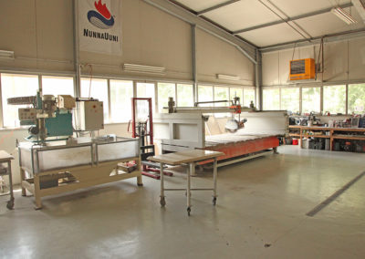 Notre atelier est équipé de machines-outils spécifiques à la réalisation de travaux de marbrerie. Ce qui nous permet de réaliser entre autre la restauration de vieux fourneaux en pierre-ollaire.
